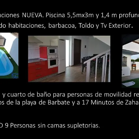 Chalet Privado Rural Barbate is located 10 minutes' drive from the La Breña and Barbate Marshes Natural Park and offers a private swimming pool with a patio for guests to relax and unwind. Featuring a terrace, this 9-room holiday home is situated 6 km from the Ya En Tu Casa.
